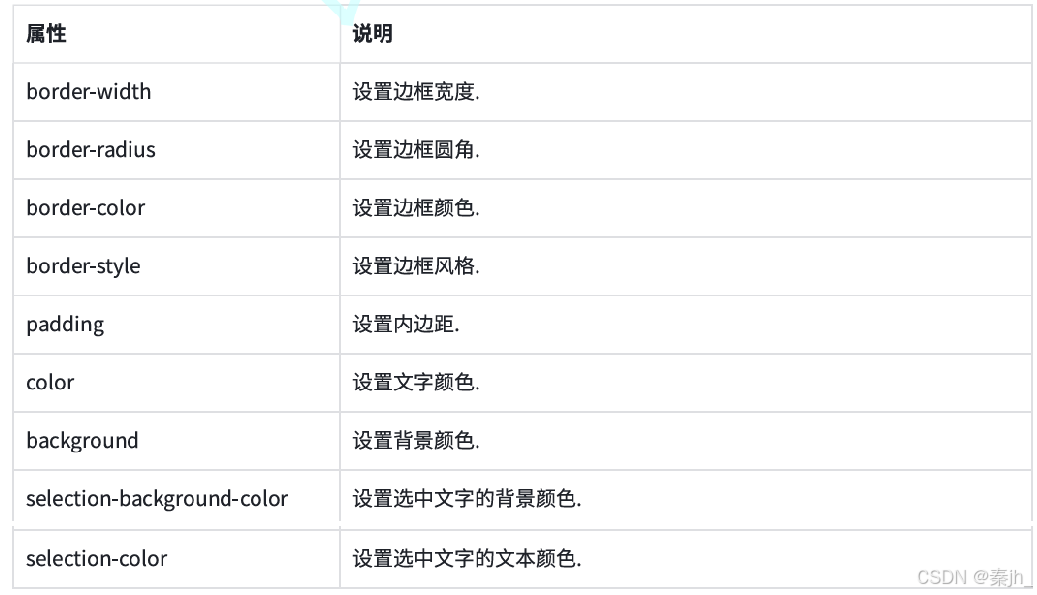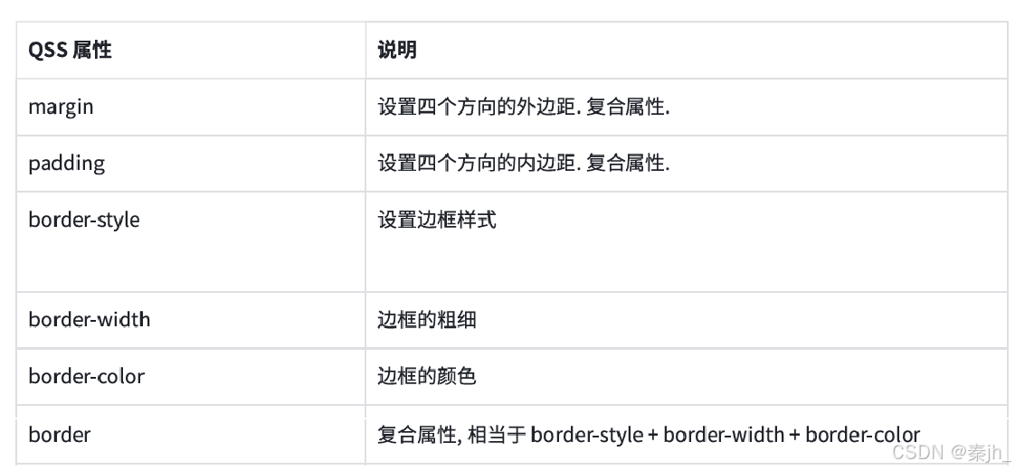 当然,由于Qt本⾝的设计理念和⽹⻚前端还是存在⼀定差异的,因此QSS中只能⽀持部分CSS属性. 整体来说QSS要⽐CSS更简单⼀些