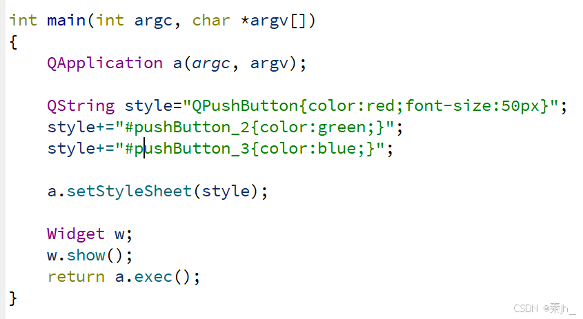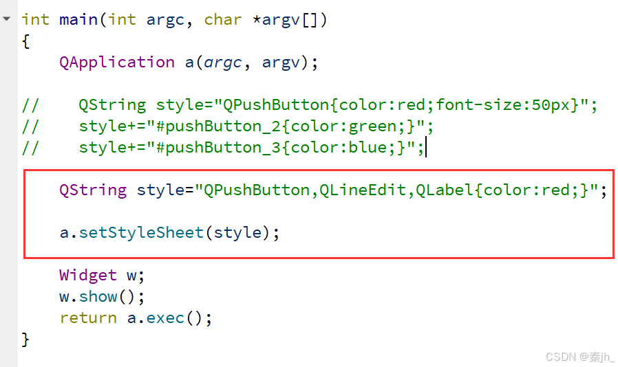 QWidget 中包含了 setStyleSheet ⽅法,可以直接设置样式.