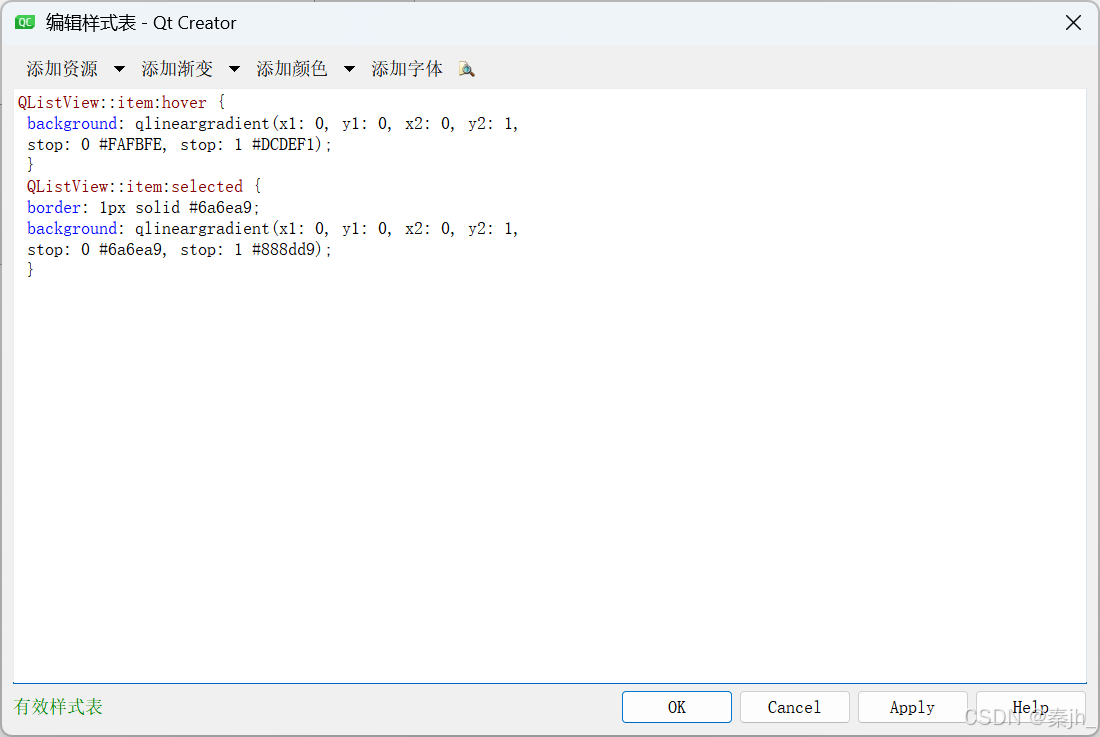 QSS也可以通过QtDesigner直接编辑,从⽽起到实时预览的效果.同时也能避免C++和QSS代码的耦 合.