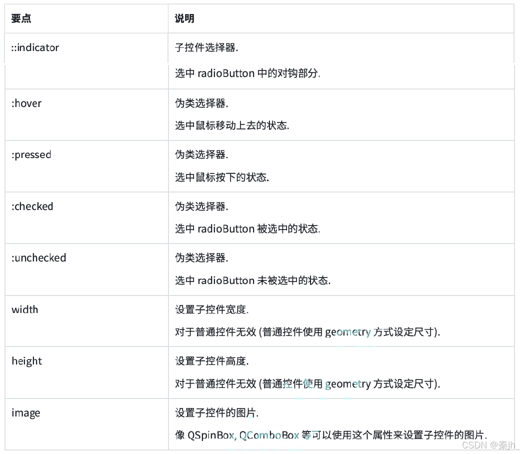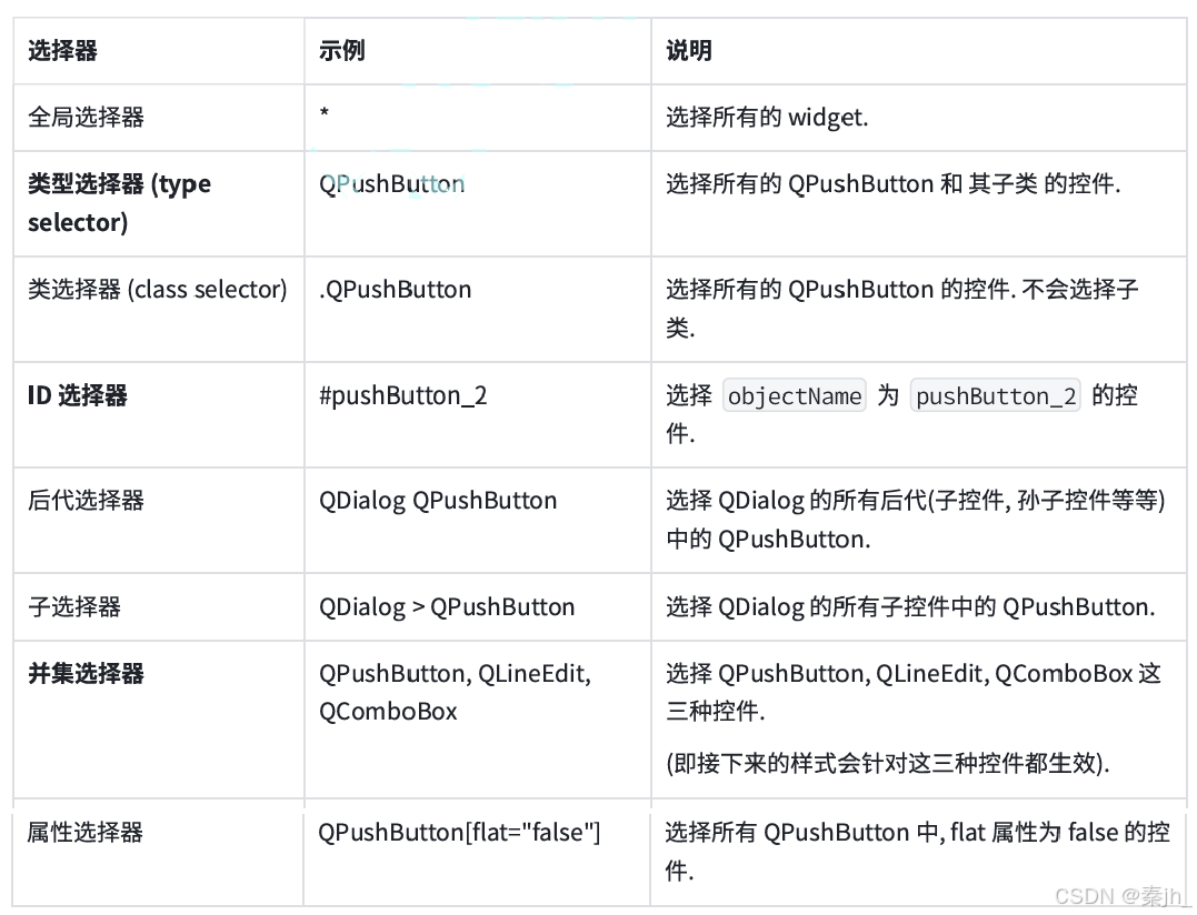总体来说,QSS选择器的规则和CSS选择器基本⼀致