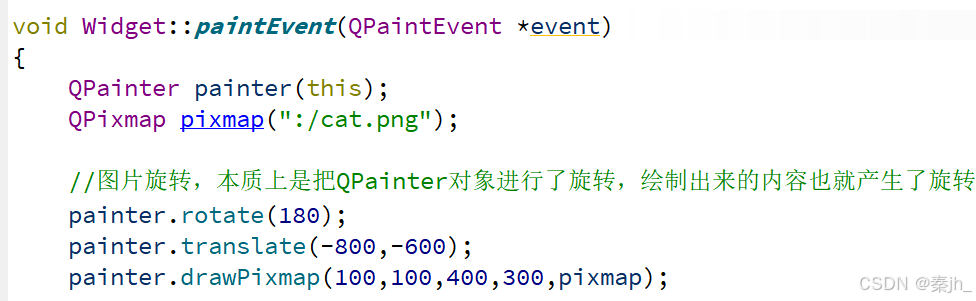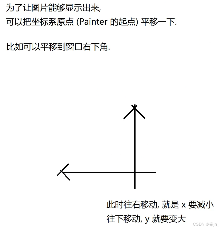 平移图⽚实际是通过改变坐标来实现。QPainter类中提供了translate()函数来实现坐标原点的改变。