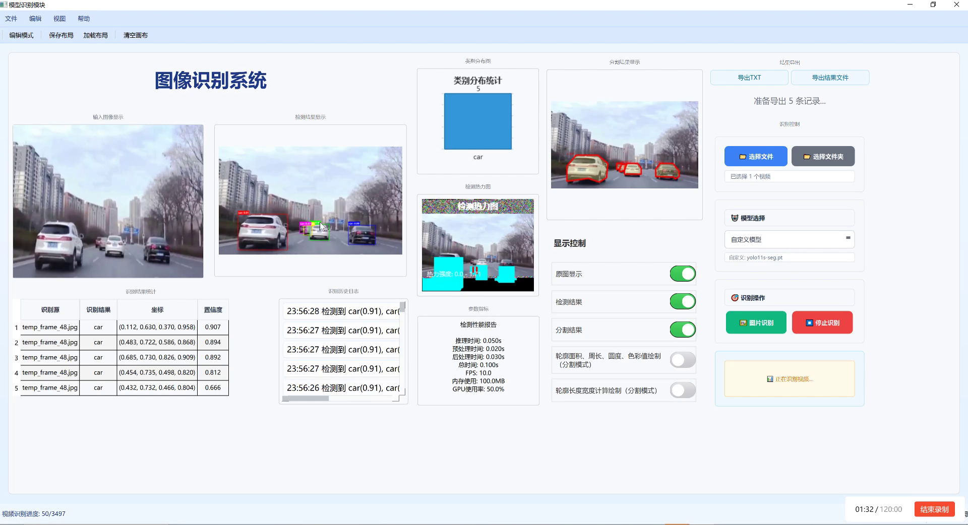 - 输出展示:在图像上标注检测结果,并计算成熟度统计