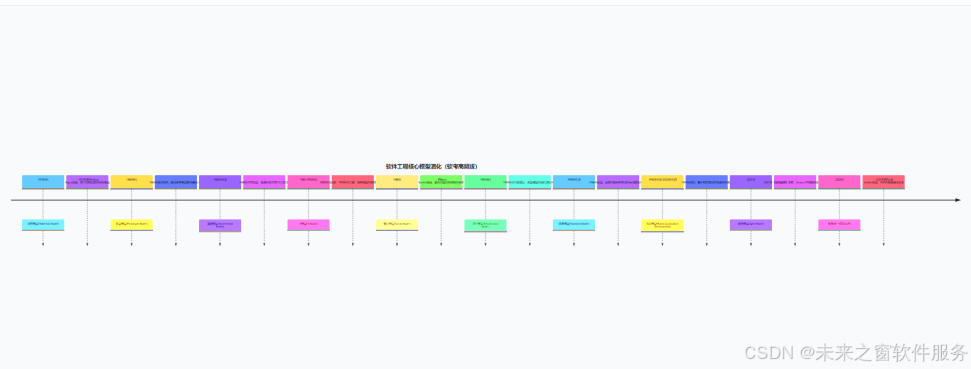 软件工程模型的演化,是一部从僵化线性开发 走向灵活迭代交付的发展史,每一代模型的诞生,都对应着不同时期软件开发的痛点与需求,具体时间线与核心变迁如下: