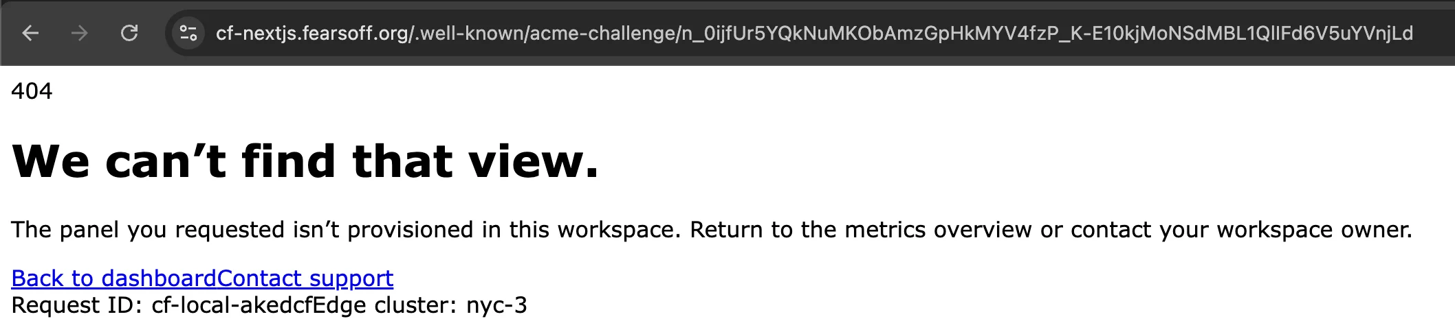 我们正在审查一组应用程序的访问态势,其中 WAF 配置为阻止全世界,只允许特定来源。在其他地方,WAF 完全按照其描述行事。但当我们将请求指向 /.well-known/acme-challenge/{token} 时,WAF 退到一边,源站用自己的声音回应。这个谁在说话的单一变化------Cloudflare 插页 vs. 源框架------就是线索。