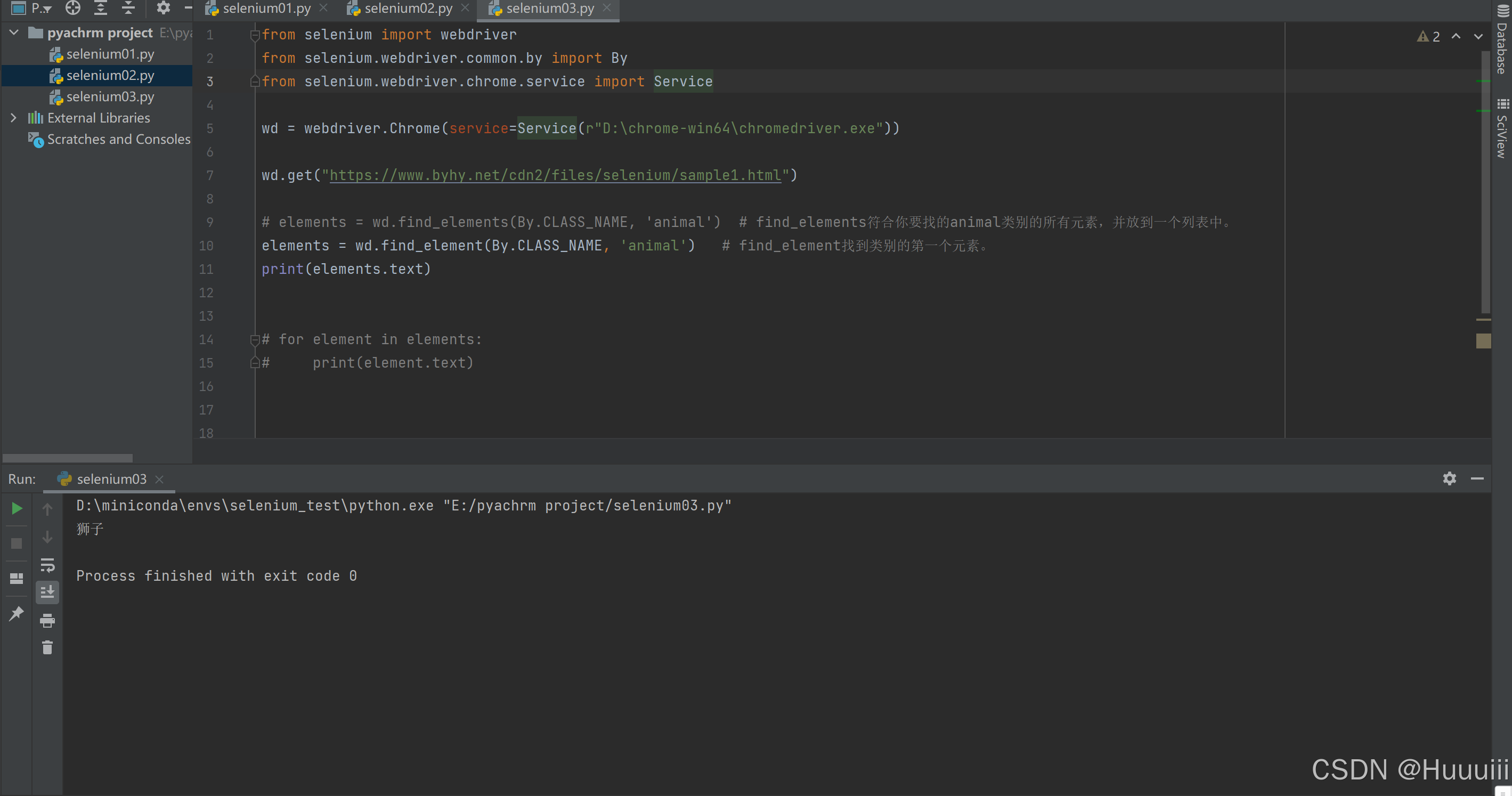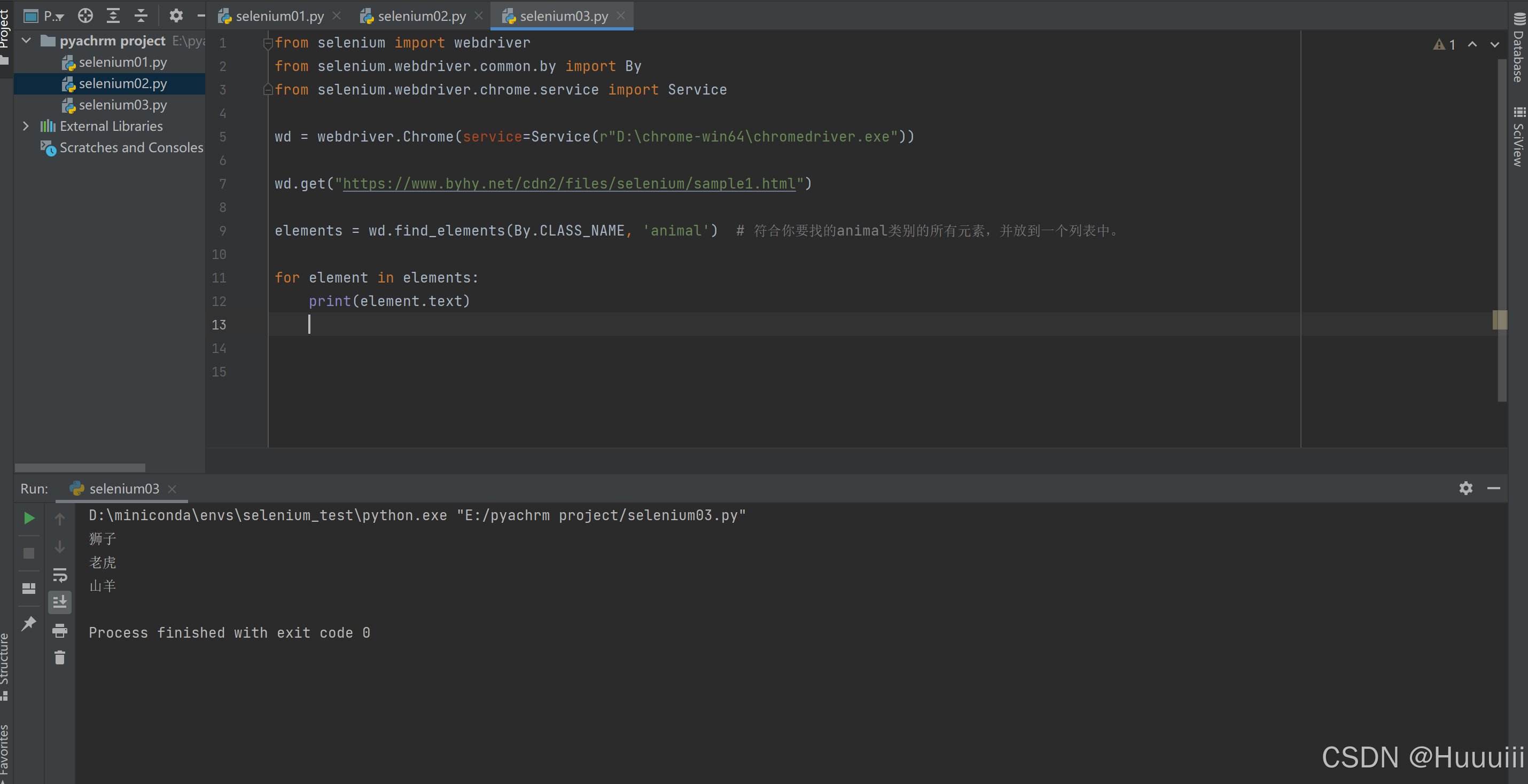 elements = wd.find_elements(By.CLASS_NAME, 'animal') # 符合你要找的animal类别的所有元素,并放到一个列表中。