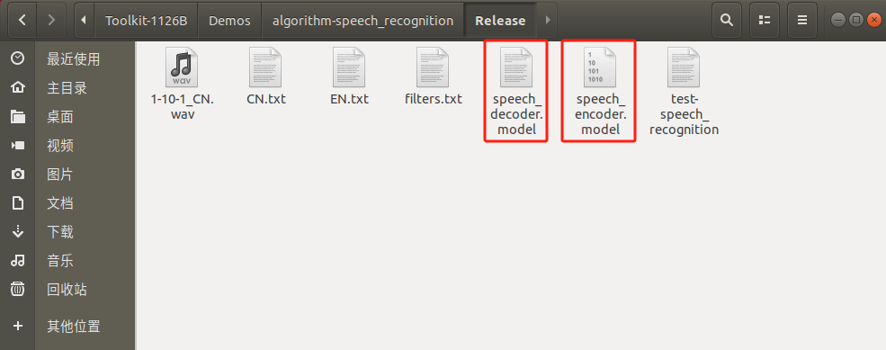 同时需要把下载的语音识别算法模型复制粘贴到Release/目录: