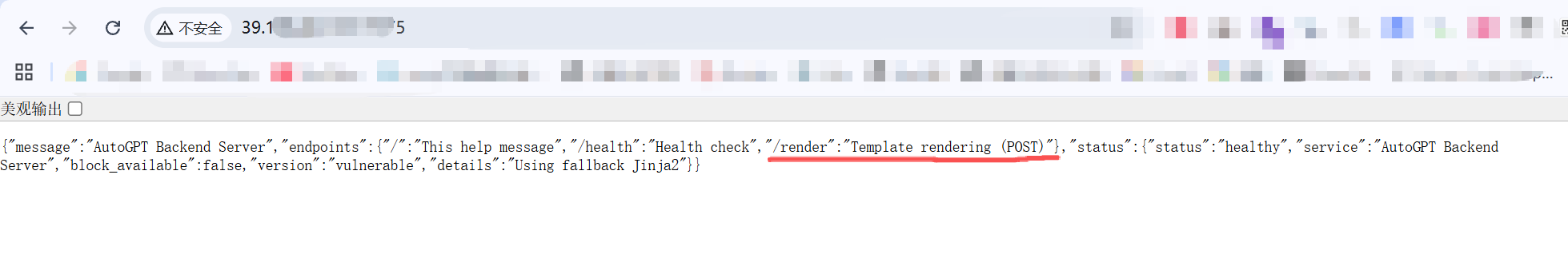 漏洞细节和原理可参考此文章AutoGPT SSTI Vulnerability Leading to Remote Code Execution (RCE) in significant-gravitas/autogpt