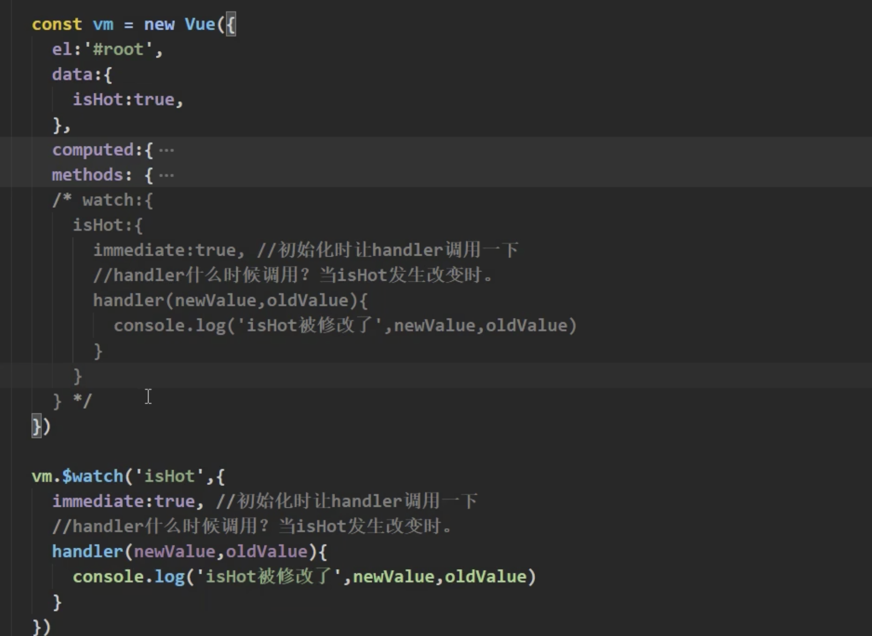 (1) new Vue时传入watch配置