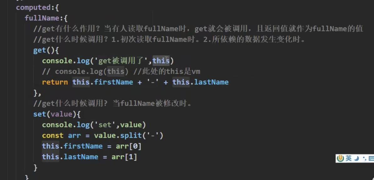 (2) 如果计算属性要被修改,那必须写set函数去响应修改,让set中要引起计算时依赖的数据发生改变