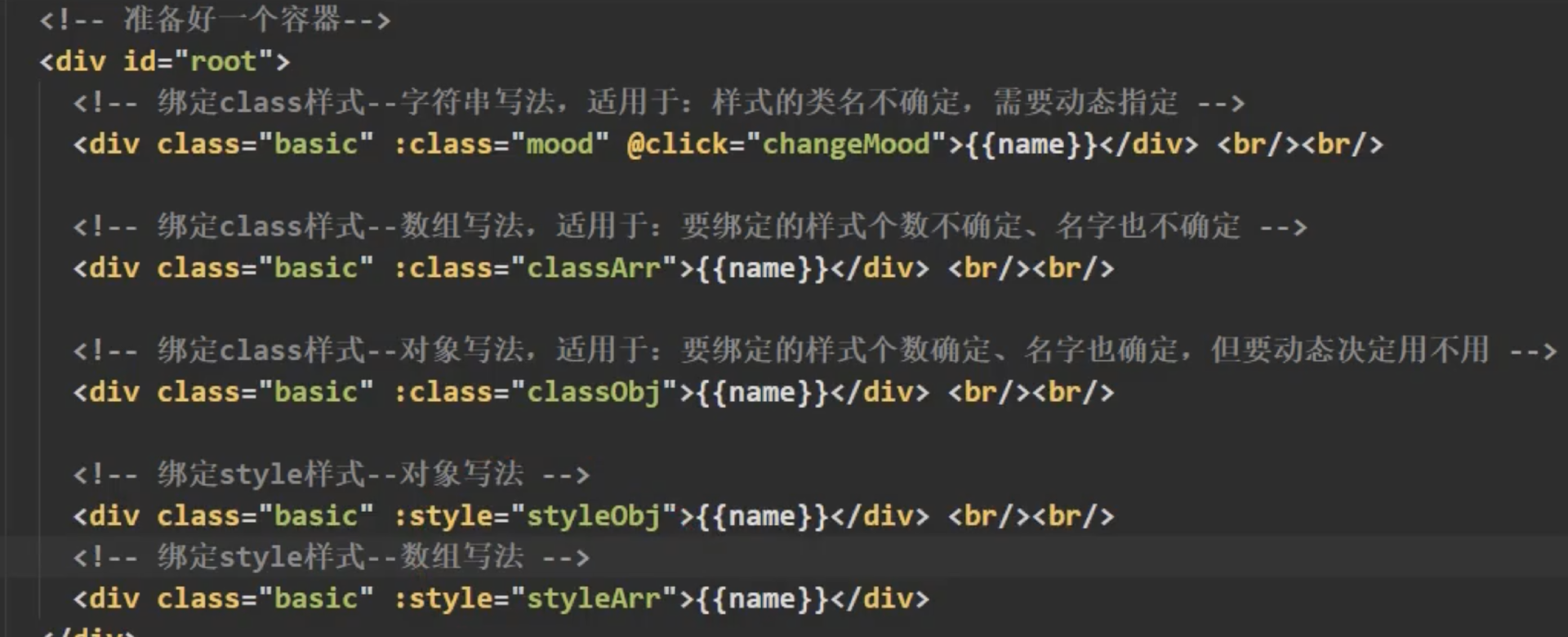(2) 对象写法适用于: 要绑定多个样式,个数不确定,名字也不确定