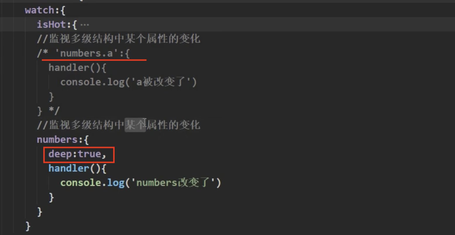 (2) 配置deep:true 可以检测对象内部值改变(多层)