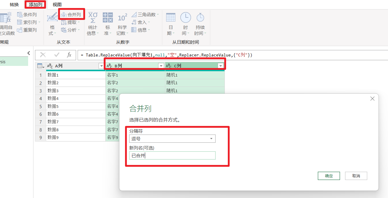 主查询 (4) → 重命名为"分析_C" → 删除A、B、D列