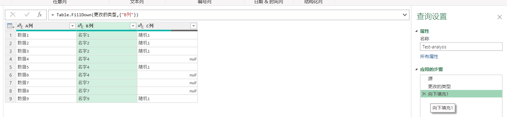 主查询 (3) → 重命名为"分析_B" → 删除A、C、D列