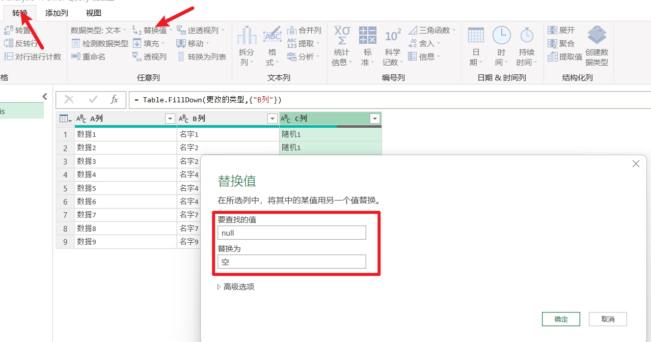 数据列有一些空白单元格null,为了保持数据的一致性,将指定列的null替换为"空"。