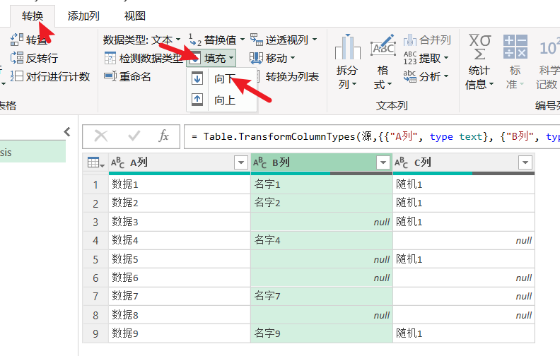 | 填充空白单元格 | 将空值用上方或下方的非空值填充(常用于合并拆分后留下的空格) | 上下合并后出现空行 → 自动向下填充 |