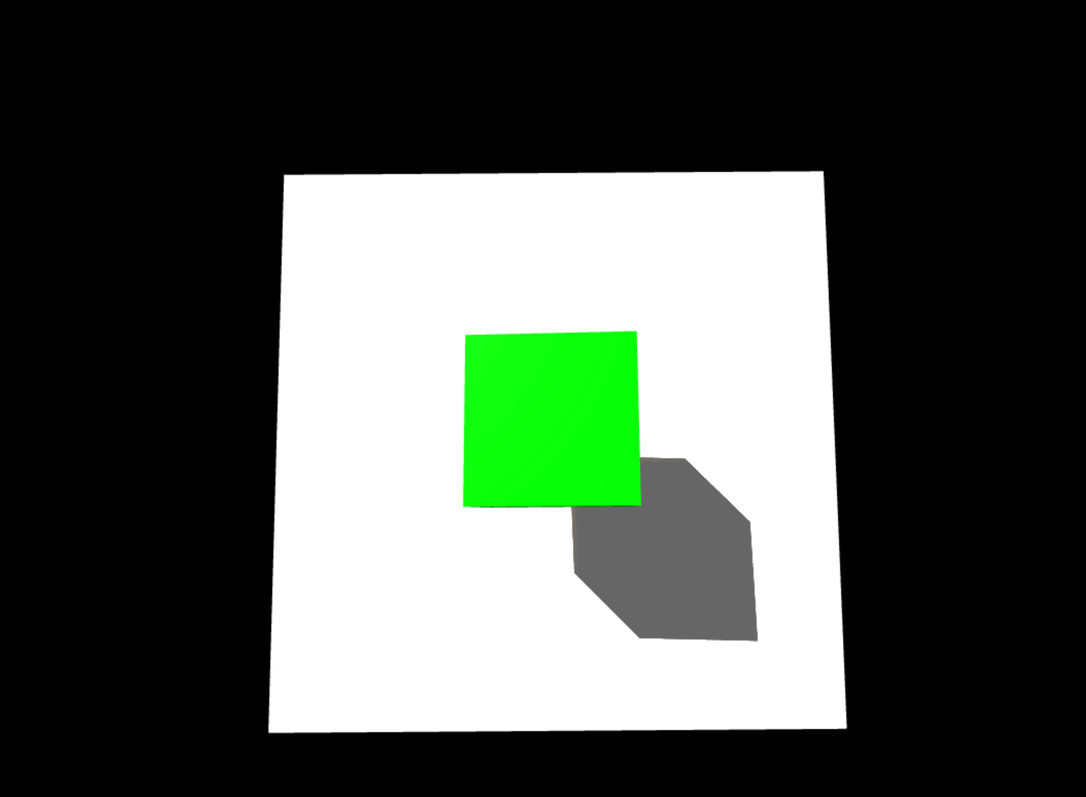 场景中有绿色立方体和灰色地面,立方体缓慢旋转;