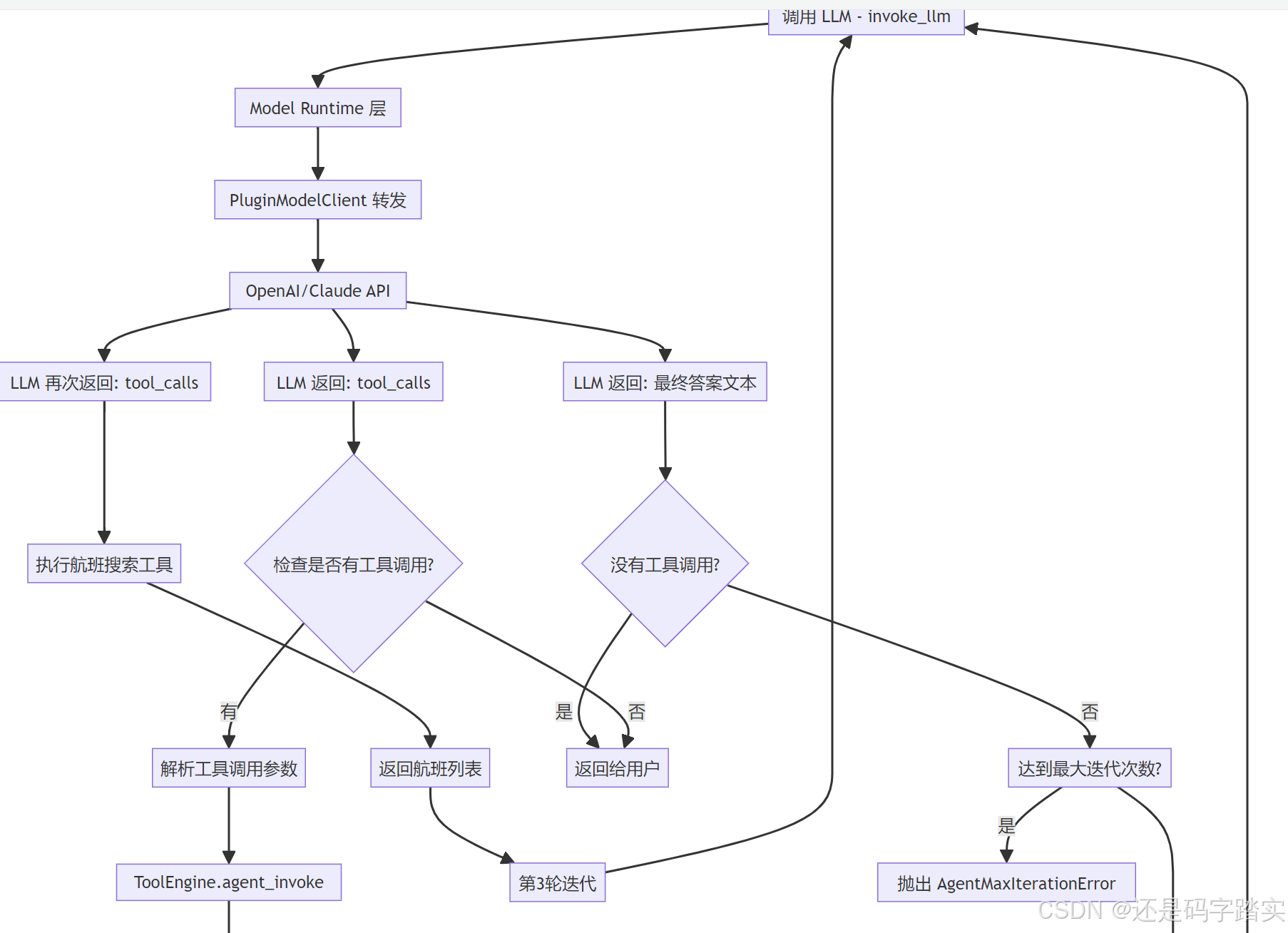tool_calls,立即抛出AgentMaxIterationError,触发上层告警。