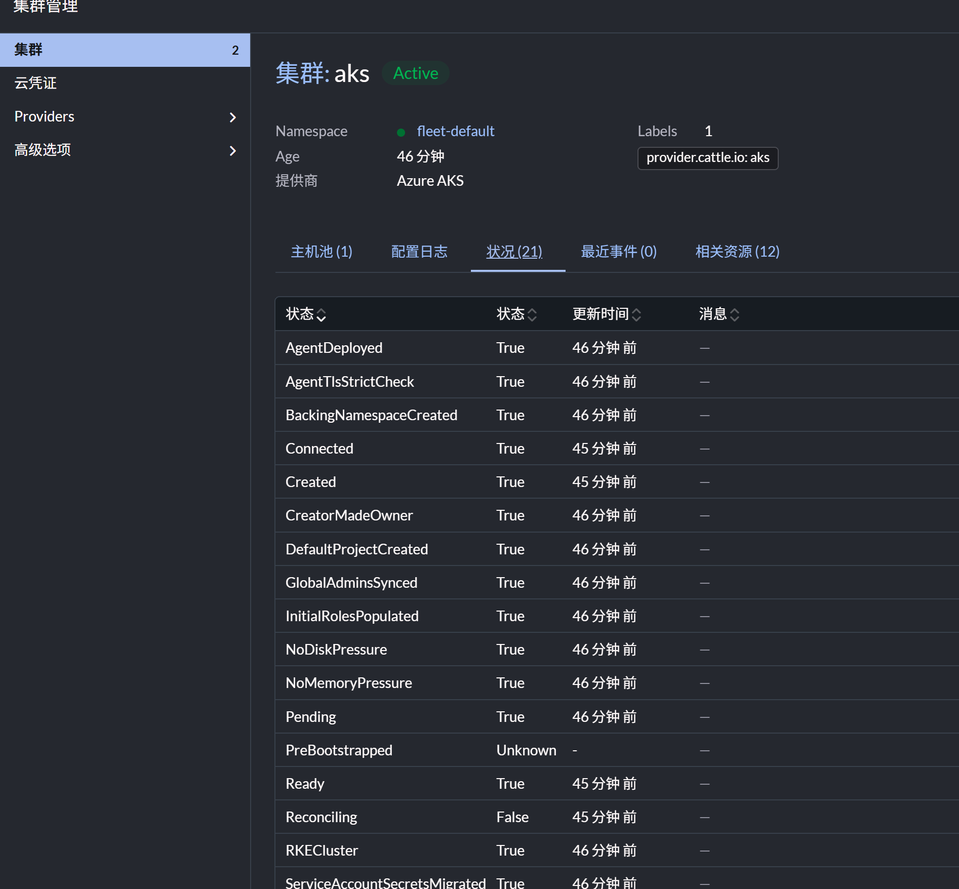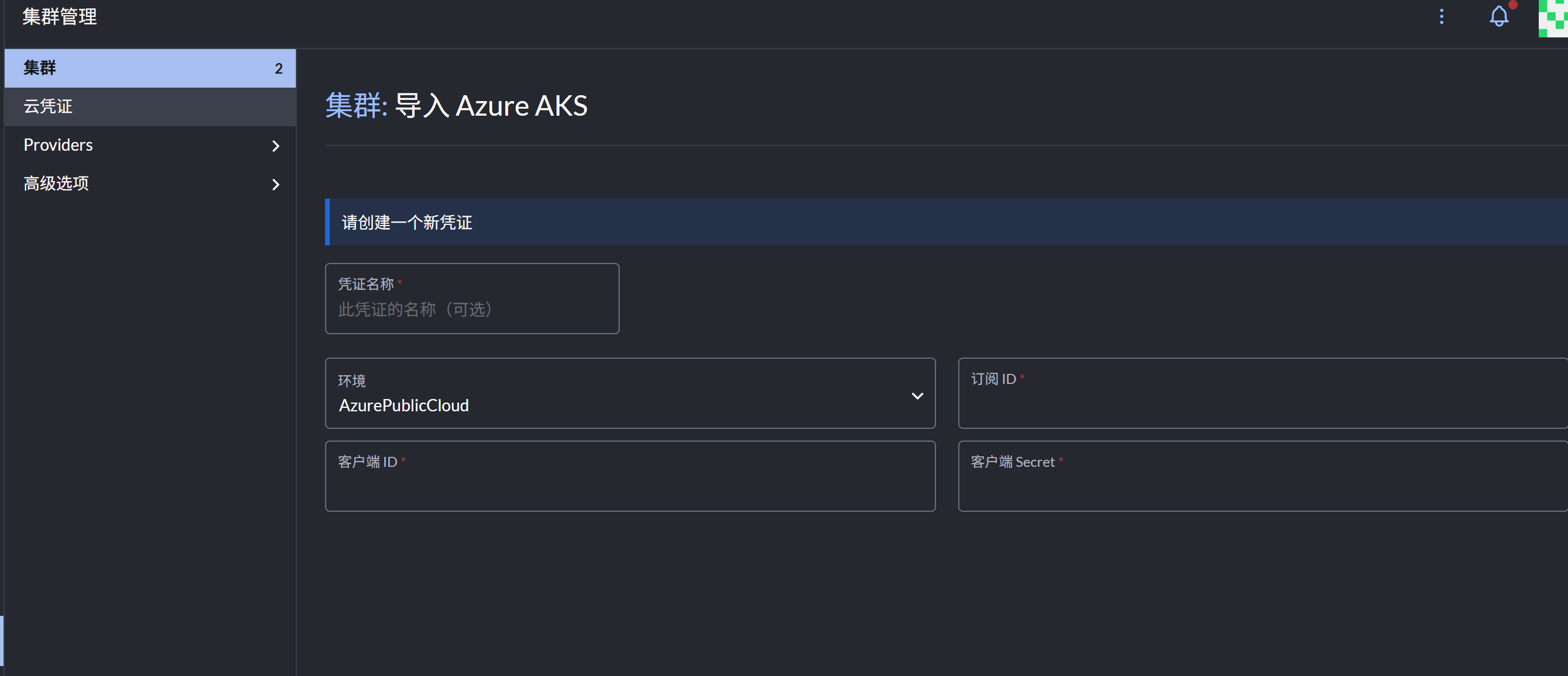注意:Rancher 的 URL 必须能被 AKS 集群访问。