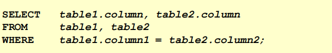 - 在where子句中写入连接条件;