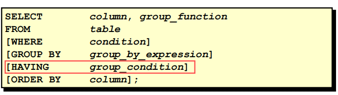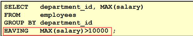 - 满足HAVING子句中条件的分组将被显示;