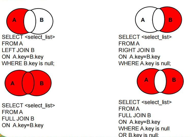 - 外连接(左外连接 left [outer] join on、右外连接 right [outer] join on)
