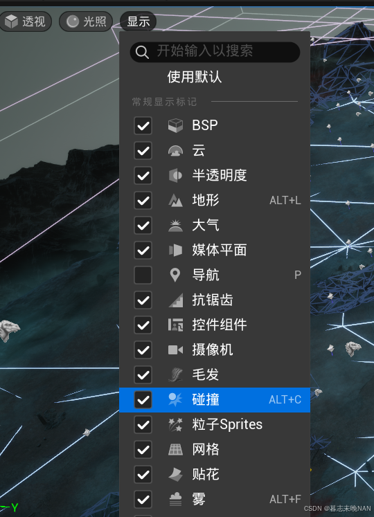 碰撞也是很消耗,我们可以在显示中开启碰撞,来查看碰撞体积的复杂度