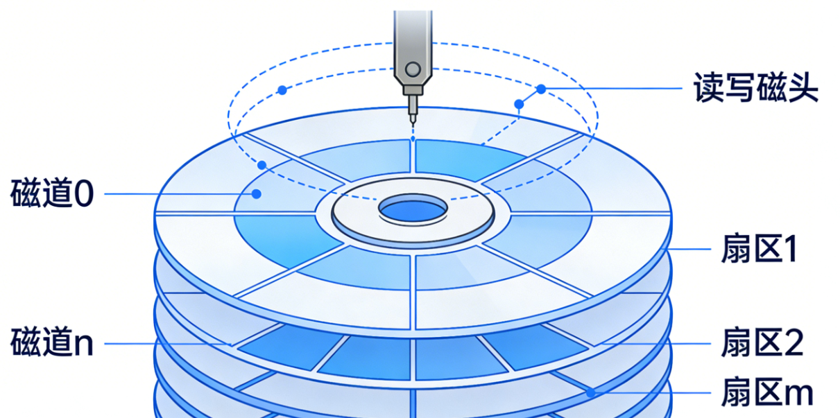 | 寻道时间(Ts) | 磁头移动到目标磁道的时间,是延迟的主要来源(通常占比 70% 以上),很难通过软件优化。 | 合理的磁盘调度算法可以减少磁头移动距离,从而降低平均寻道时间。 |