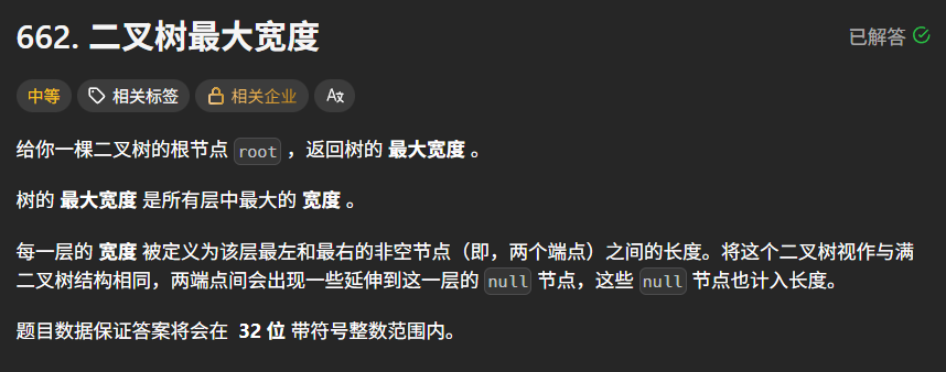 题目链接:力扣 662. 二叉树最大宽度