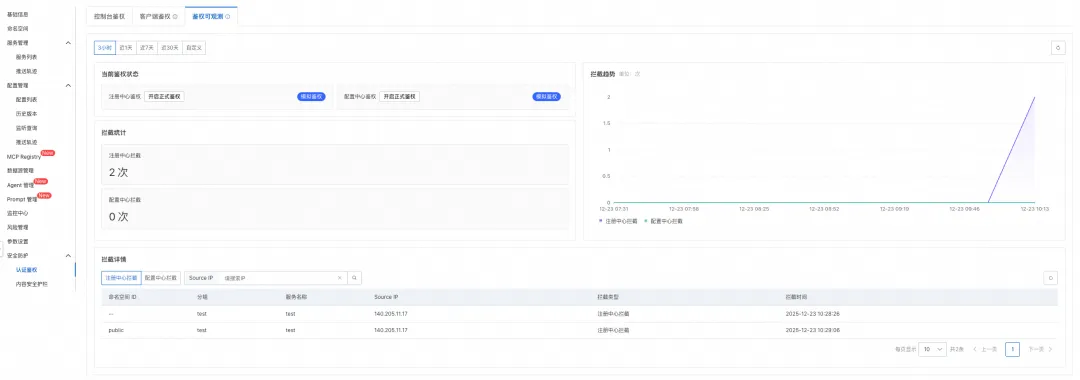 - 实时监控: 直观展示集群的鉴权成功率、失败率趋势,帮助运维人员实时掌握安全水位。