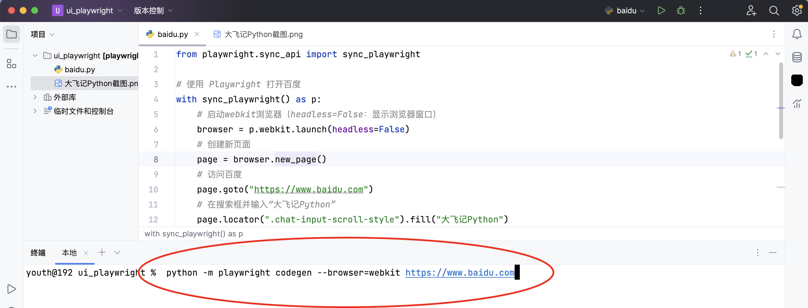 python -m playwright codegen --browser=webkit https://www.baidu.com