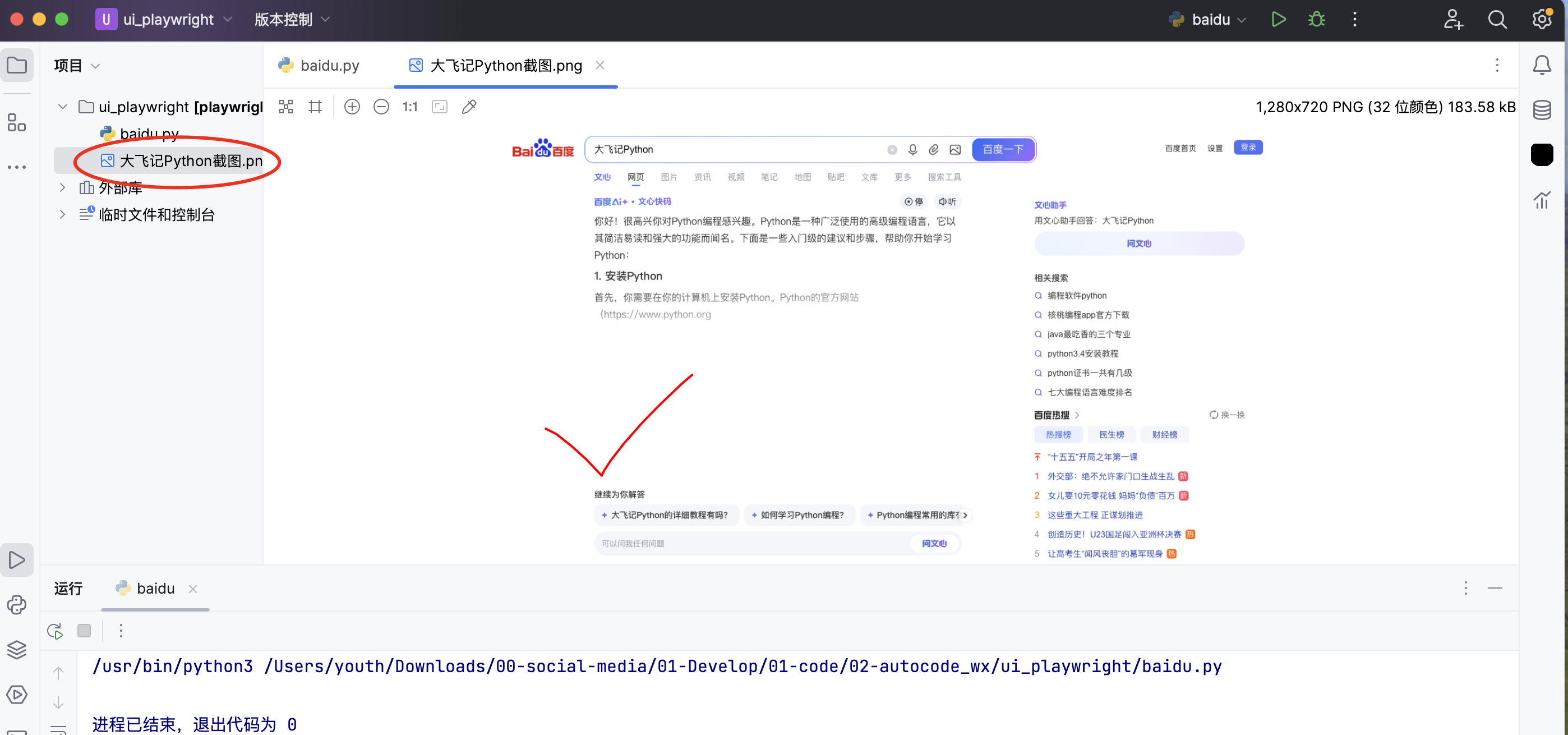 看到浏览器启动,并成功保存截图即为成功~恭喜,环境搞定!