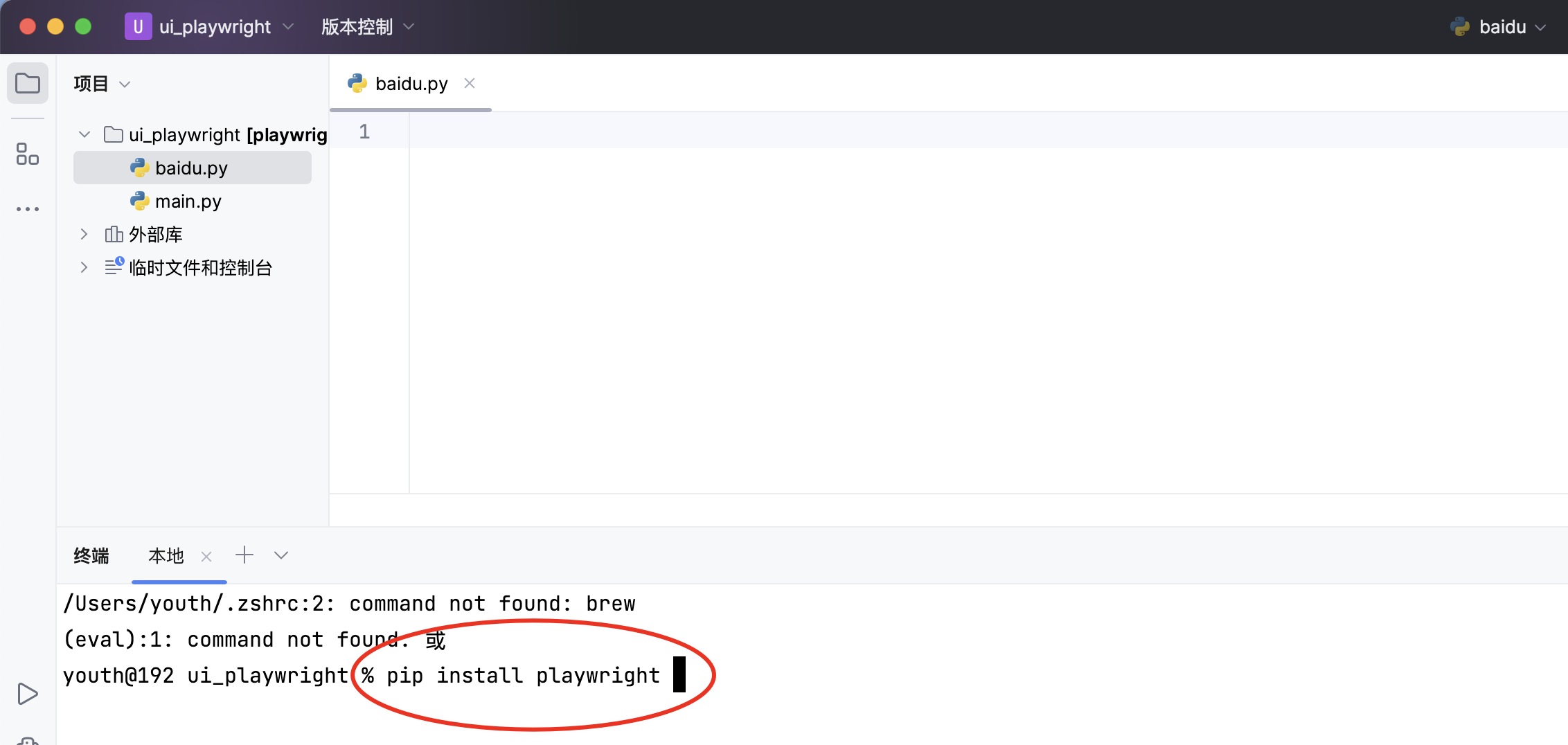 报错:zsh: command not found: playwright