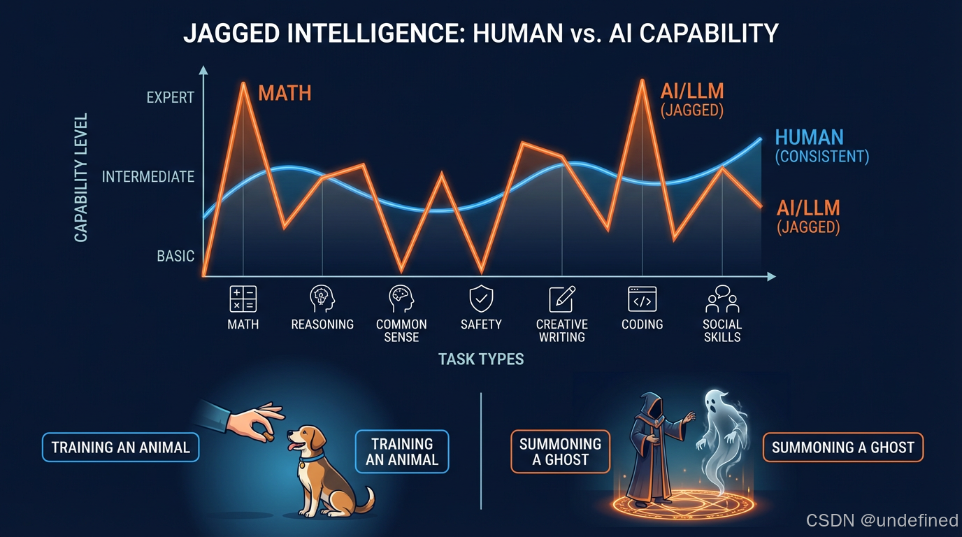 Karpathy用了一个隐喻:我们不是在"培育动物",而是在"召唤幽灵"。