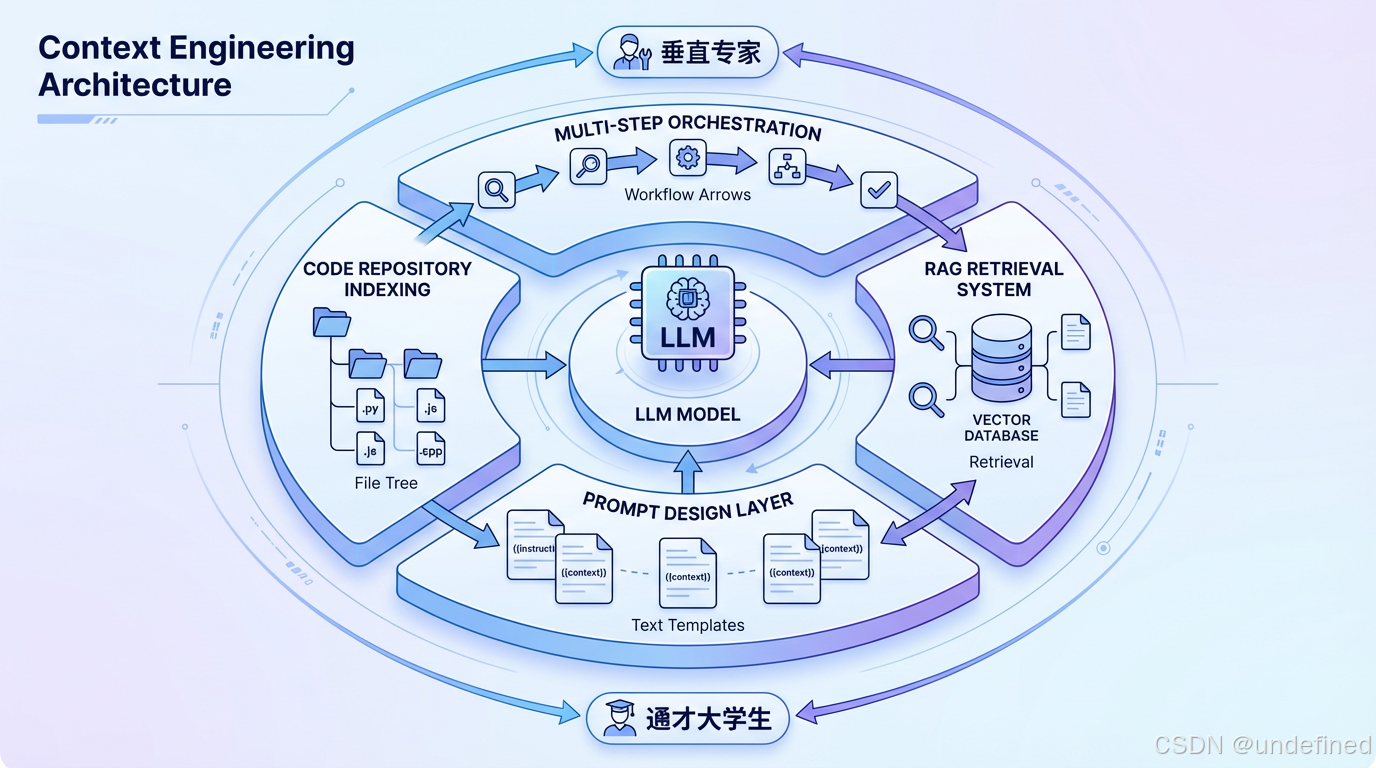 答案是上下文工程------在调用大模型时,精心设计给它的信息环境:提示词怎么写、代码库怎么索引、多次调用怎么编排。