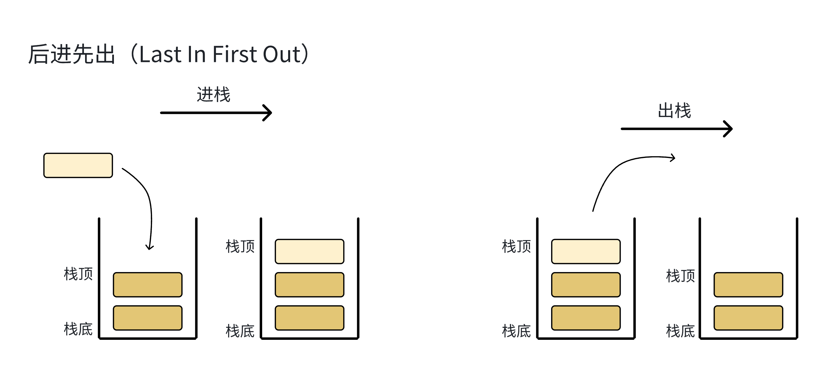 出栈 :栈的删除操作叫做出栈。出数据也在栈顶。