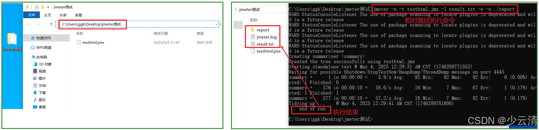 C:\Users\ggk\Desktop\jmeter测试>jmeter -n -t testhtml.jmx -l result.txt -e -o ./report