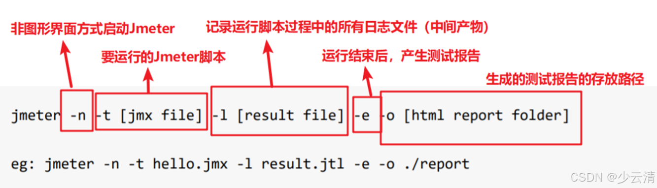 -l [result file]:生成测试报告 必备的 中间文件。一般都叫 result.jtl 或 result.txt