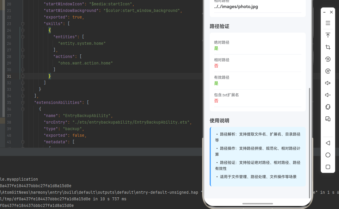 | 路径验证在鸿蒙端不准确 | 验证逻辑错误或特殊字符处理不当 | ✅ 正确验证路径,本次代码已完美实现 |