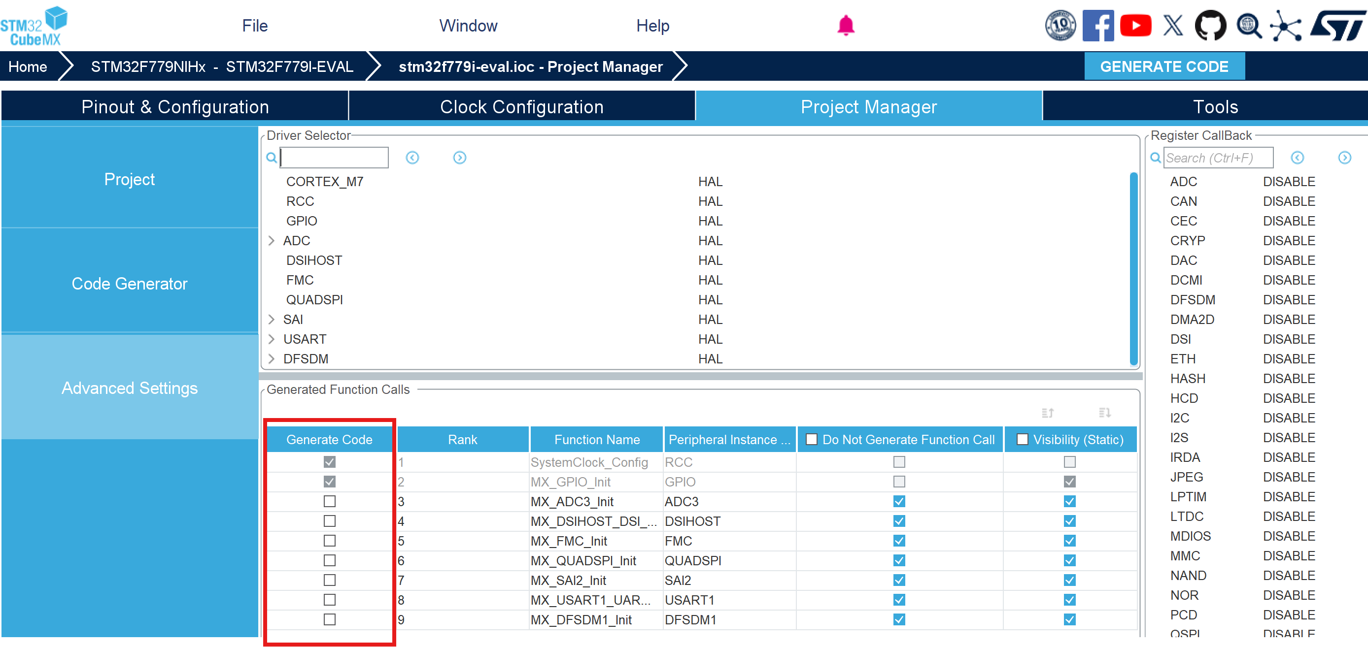 DFSDM 与 SAI 外设可通过 CubeMX 启用,以自动生成对应 HAL 文件。