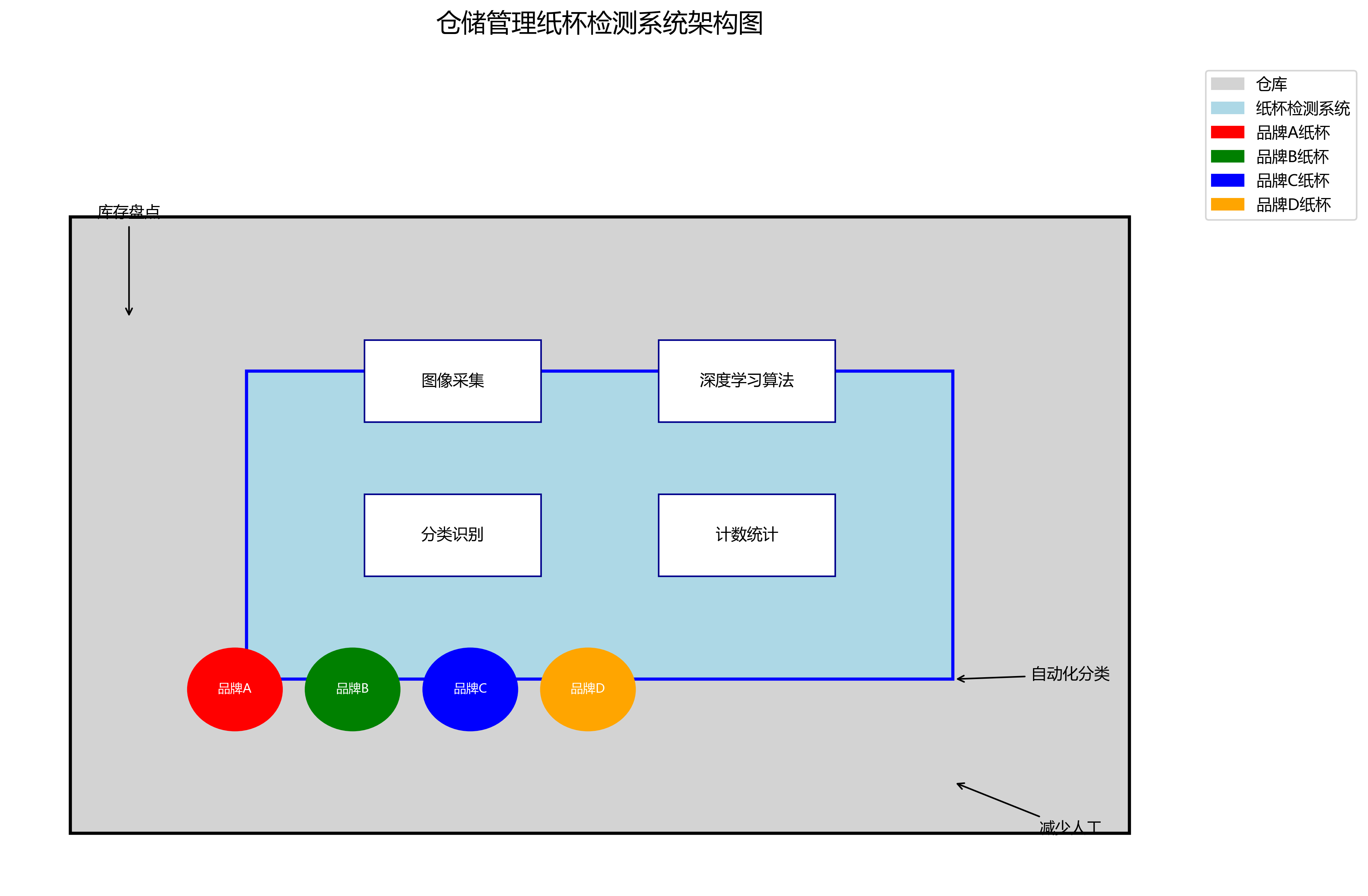 在仓储管理中,纸杯检测系统可以用于库存盘点和分类。通过结合深度学习算法,系统能够准确识别不同规格、不同品牌的纸杯,实现自动化分类和计数,减少人工盘点的工作量。