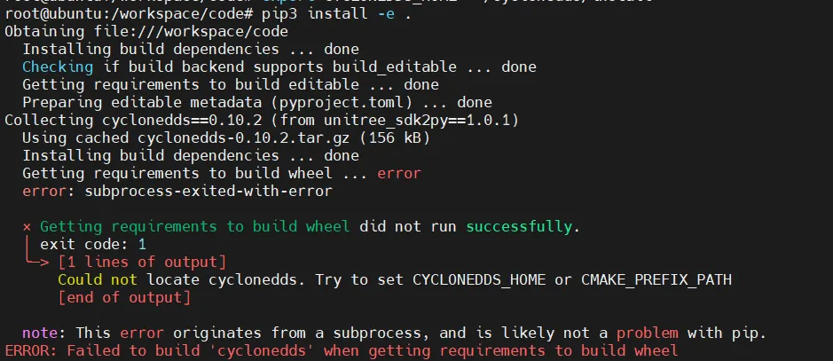 ERROR: Failed to build 'cyclonedds' when getting requirements to build wheel