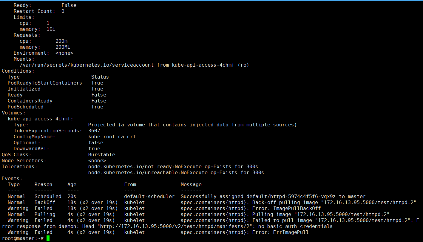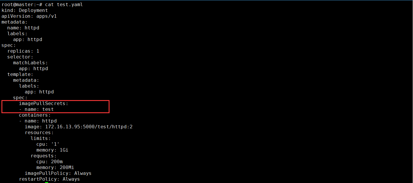 - 当前配置了一个需要身份验证的私有镜像仓库 registry,其中包含 test/httpd 测试镜像