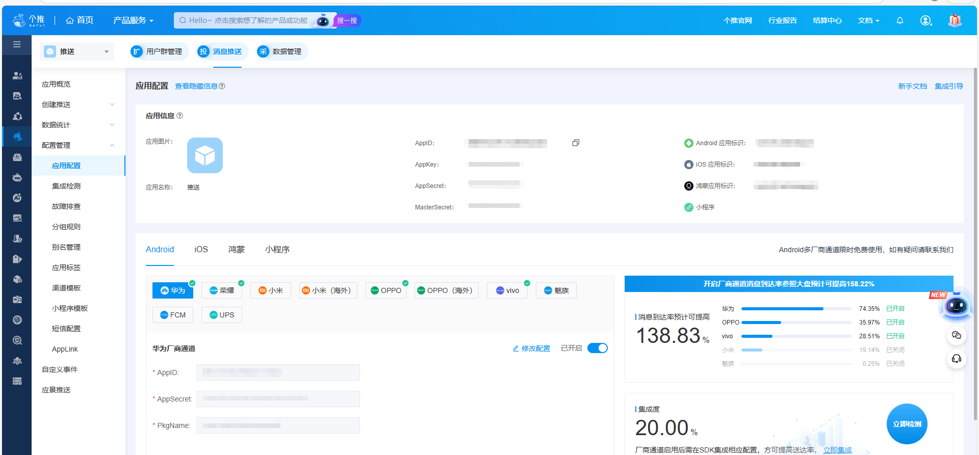 注意:不配置厂商通道,无法通过厂商推送到用户手机