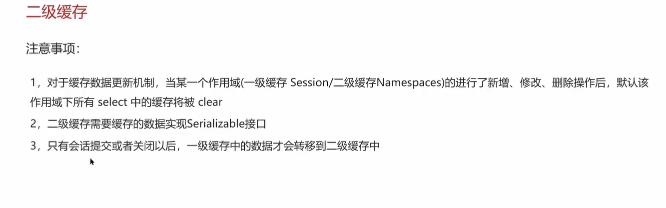 二级缓存默认是不开启的,要打开配置,mapper的xml中也要开启,二级缓存的作用域是Namespaces级别的,