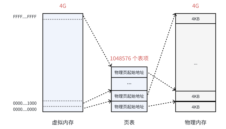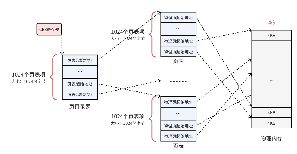 页表就是记录虚拟地址空间中的页与物理内存中的页的映射关系。页表只记录页对应的物理页的起始地址4GB/4KB*4Byte=4MB