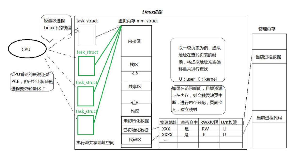 线程资源共享,本质是对进程地址空间的共享落实到页表层面就是对页表条目的共享。