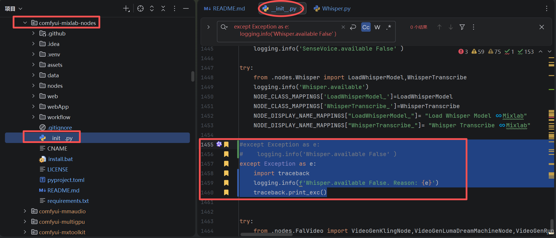 Mixlab 的默认日志只提示 False,不显示原因。为了抓出真凶,我们需要修改插件的入口文件:
