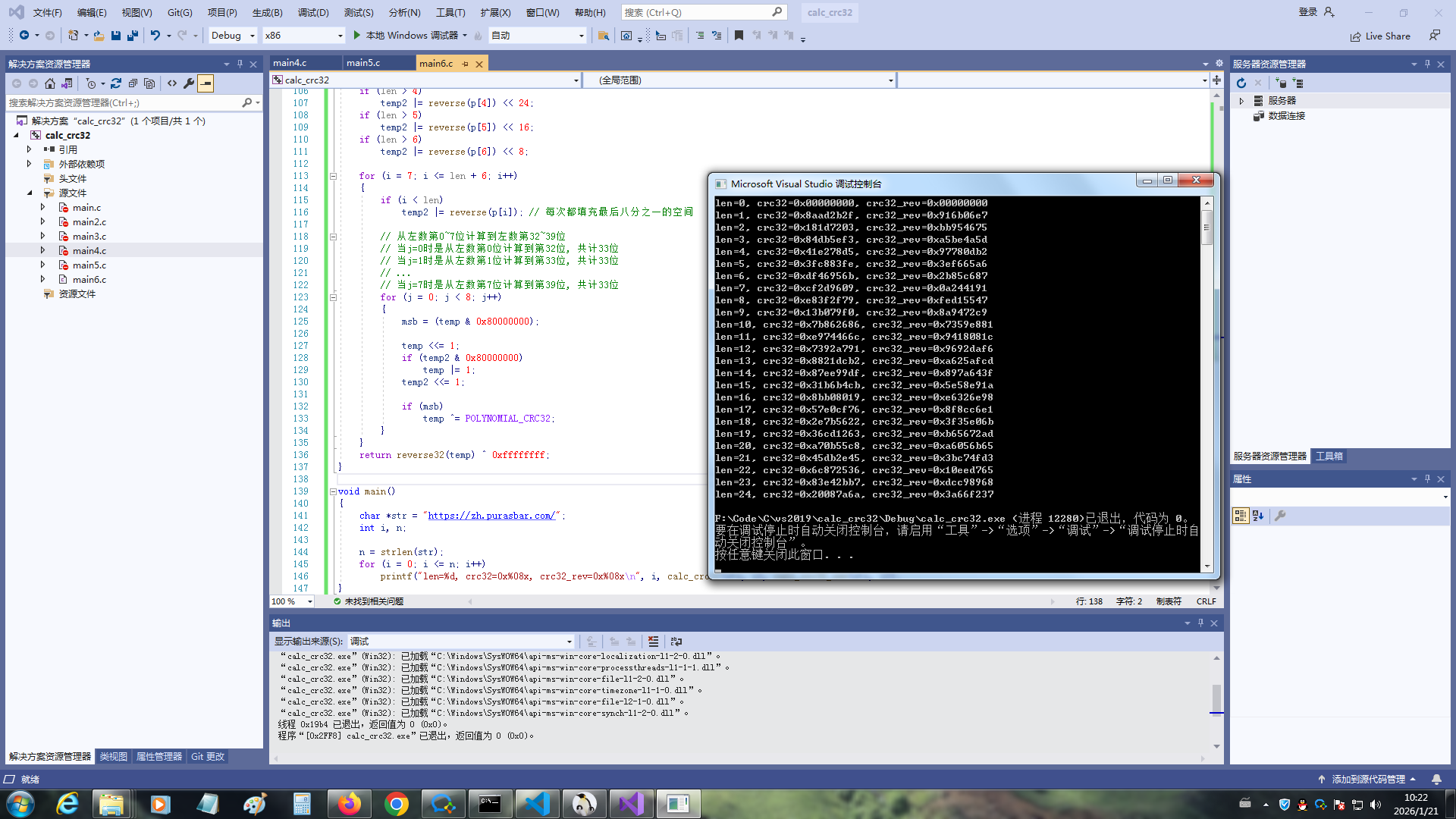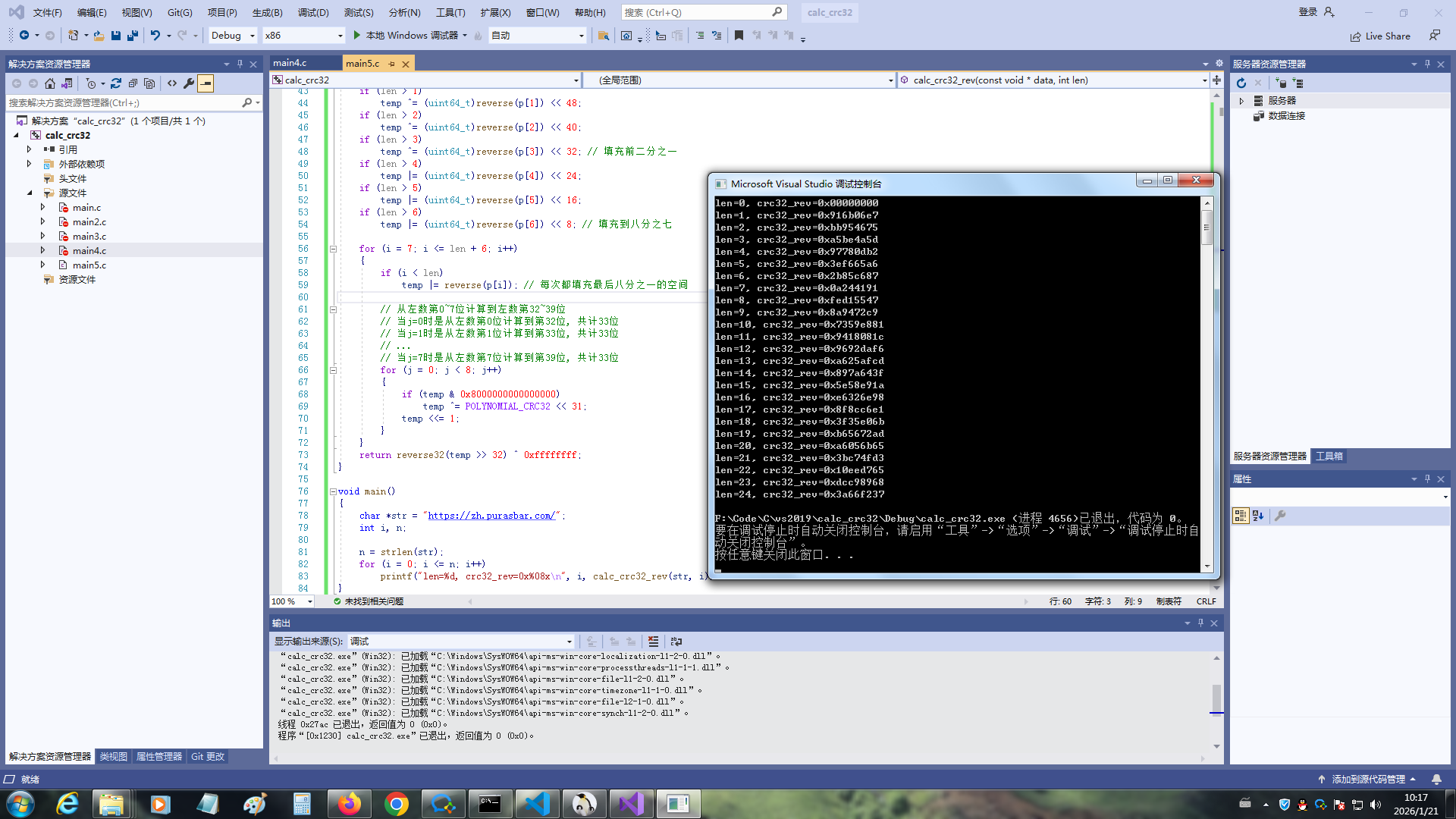 printf("len=%d, crc32_rev=0x%08x\n", i, calc_crc32_rev(str, i));