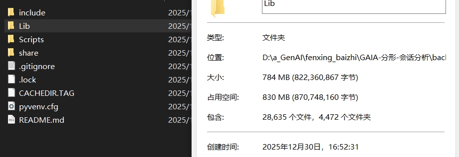 : .venv 中的 Lib (准确说是 site-packages )是混合体,但核心涉及系统兼容性的部分是"动态链接库"。