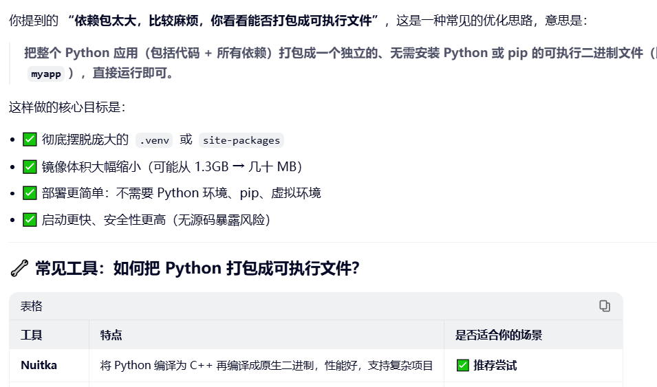饭 = 你的程序 + 必要依赖(如 torch) → 这部分没法省。